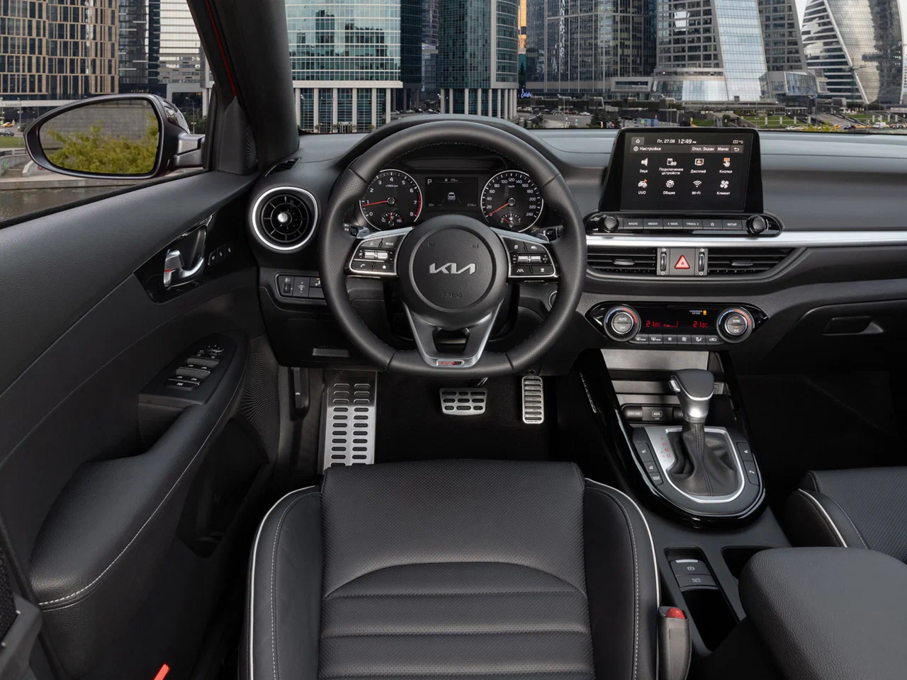 Внутри Cerato встречает водителя цифровыми возможностями: от мультимедийного экрана с диагональю до 10,25 дюйма до поддержки Apple CarPlay и Android Auto, Bluetooth, USB-портов и навигации с голосовым управлением.